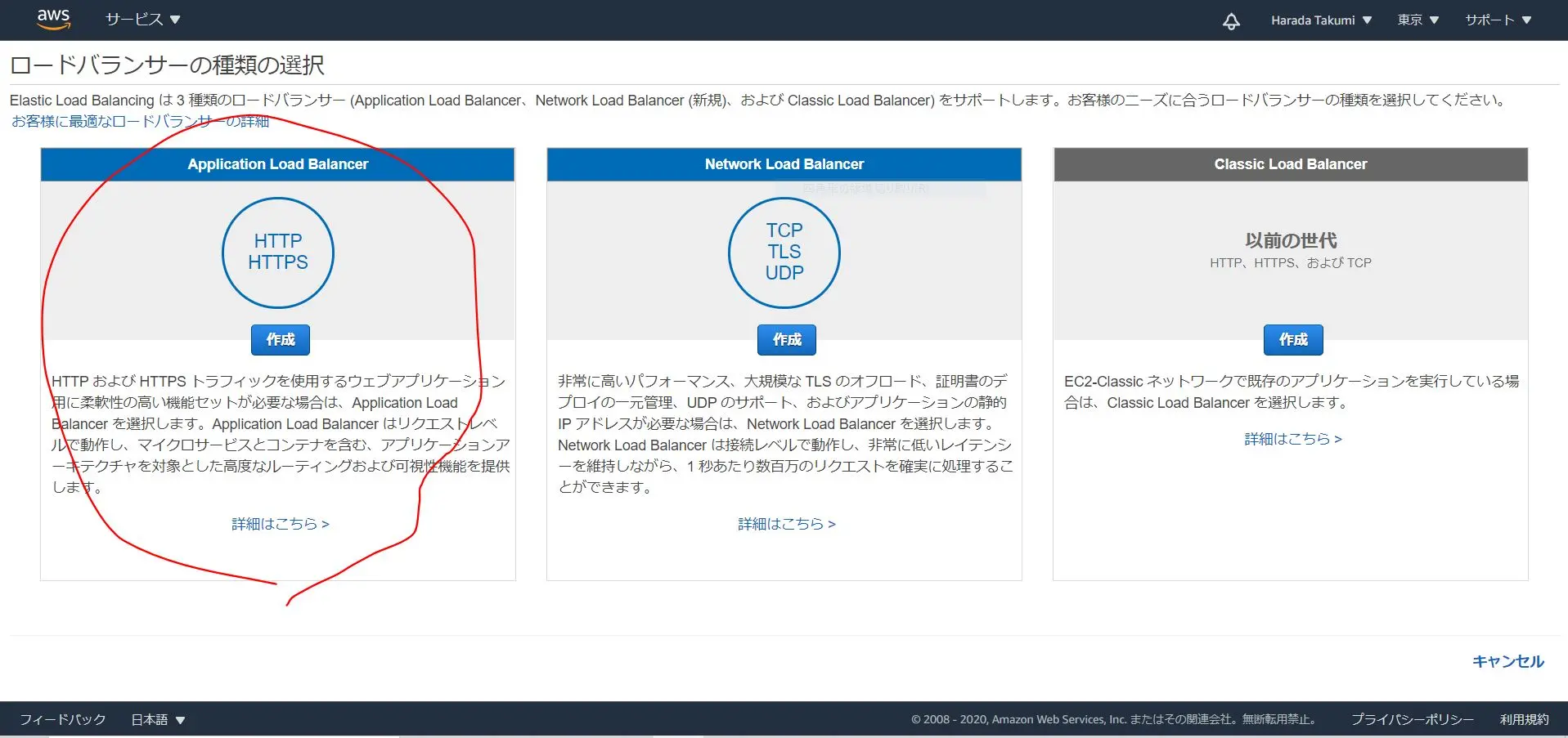 今回はALBにしましょう。