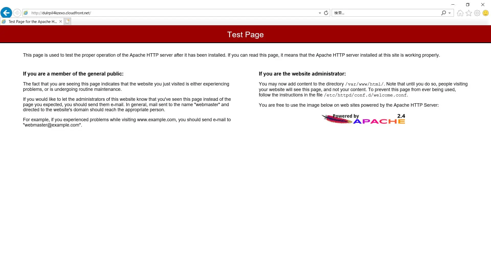 ※以下のページ表示になればOK。駄目ならApache上がってるかSGの設定見直してみてね。
