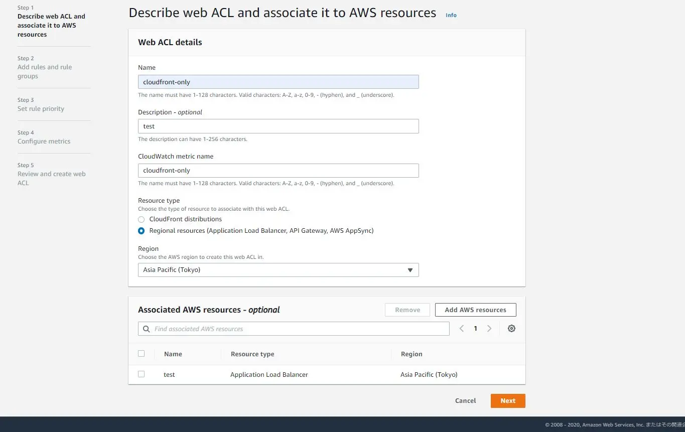 - Web ACLを作成します