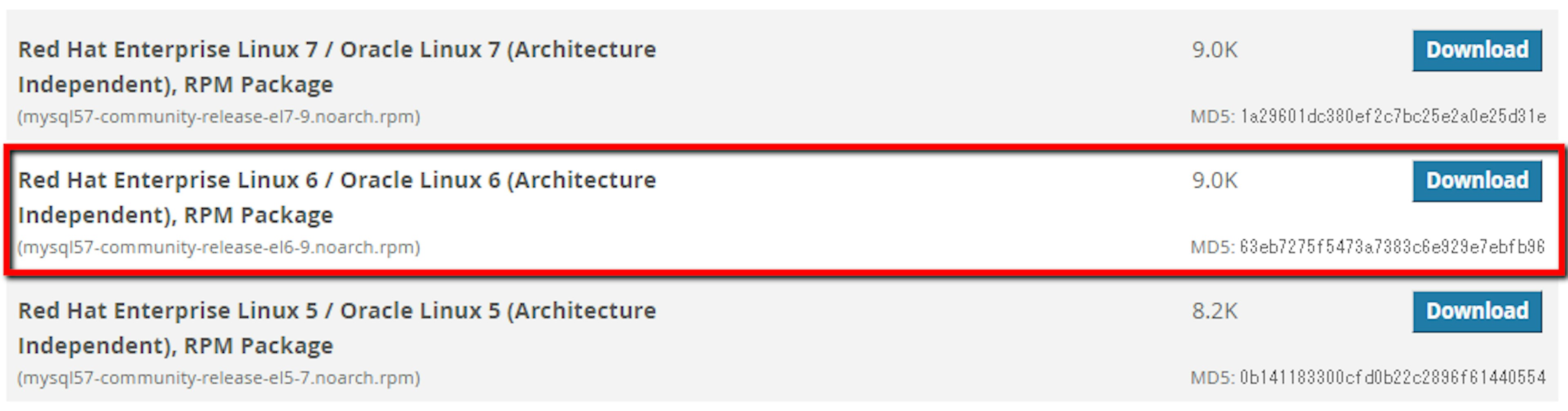 MySQL の公式サイト から CentOS 6 用のリポジトリをダウンロードします。