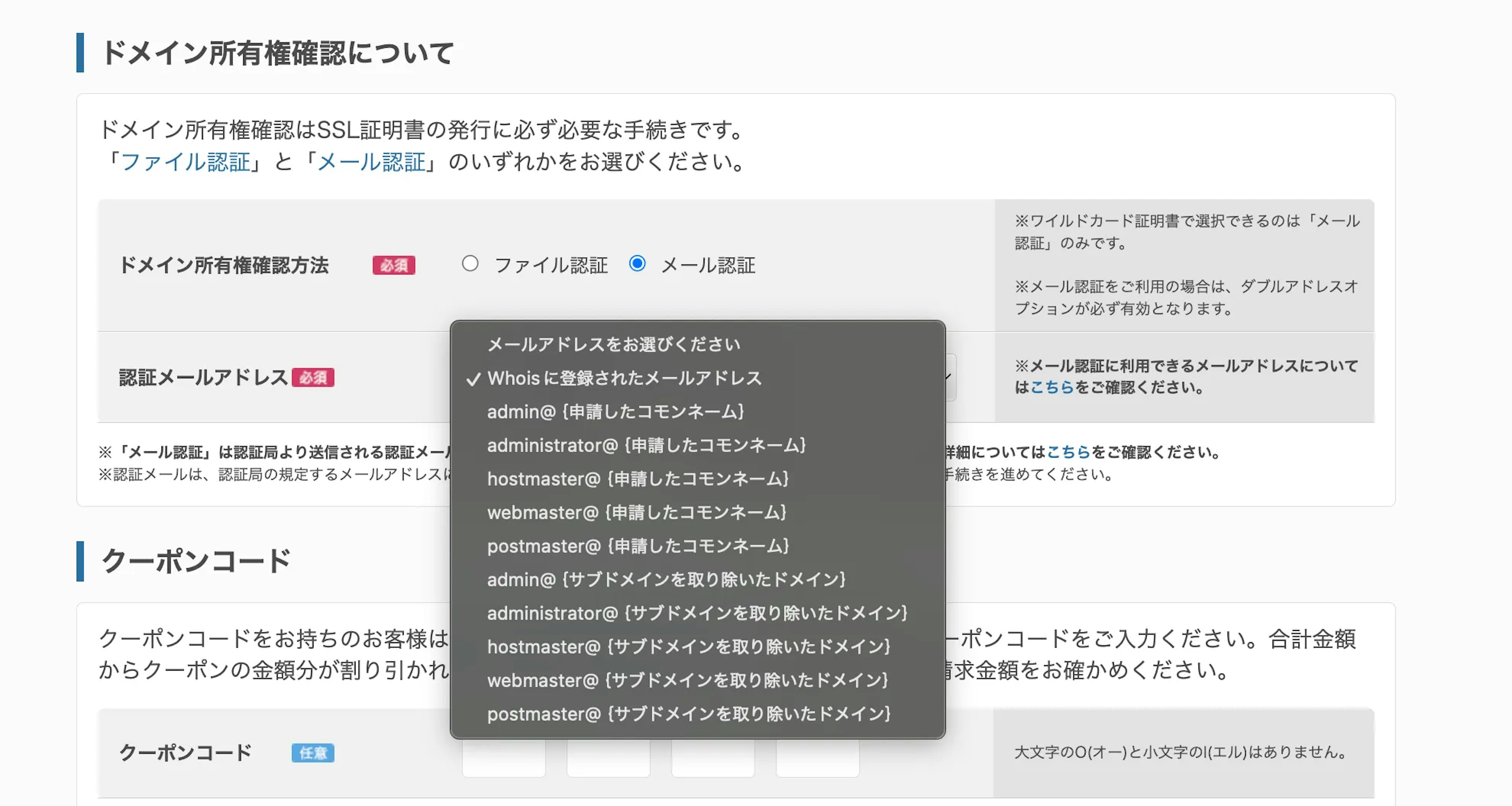 ファイル認証かメール認証のいずれかが選択できるようです。