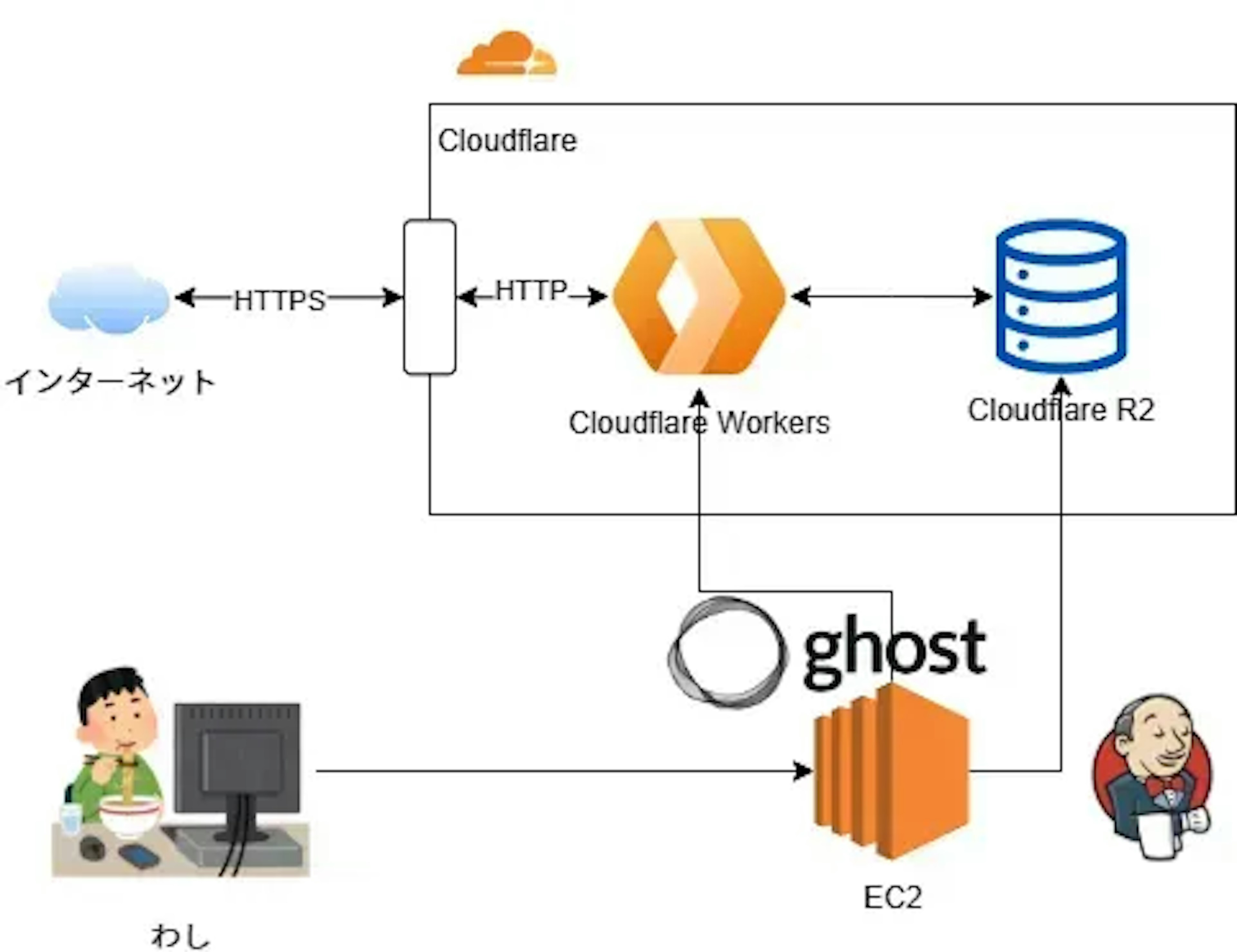 で、せっかくCloudflareを使うのだったら色々移せるものは移してよいかなと思ったので、この個人ブログに関してもCloudflareで稼働させようー!と思った次第です。