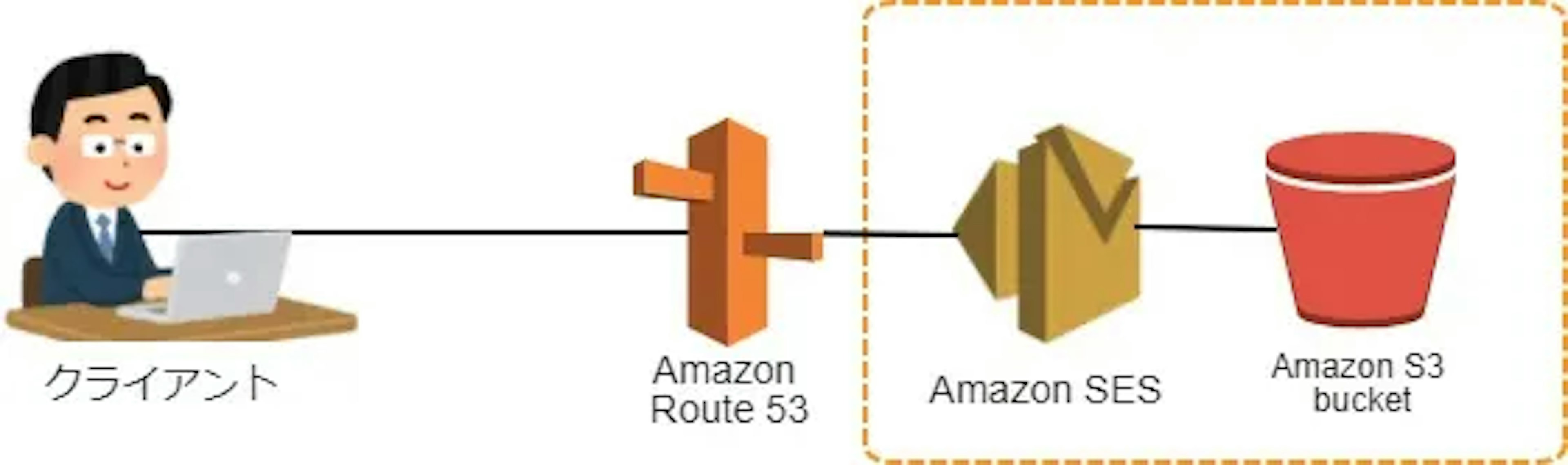 クライアントから送られたメールはRoute53を経由して、AmazonSESのSMTPサーバへ送られる