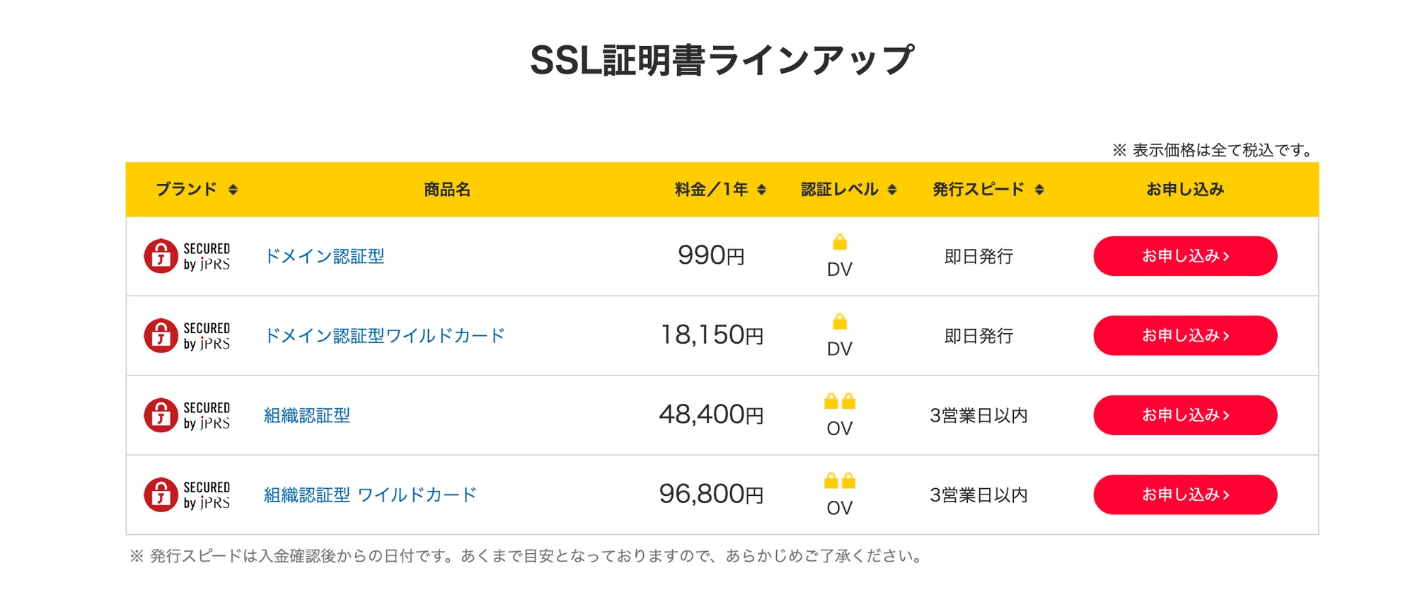 JPRSのSSL証明書を購入しました。理由は安いから。