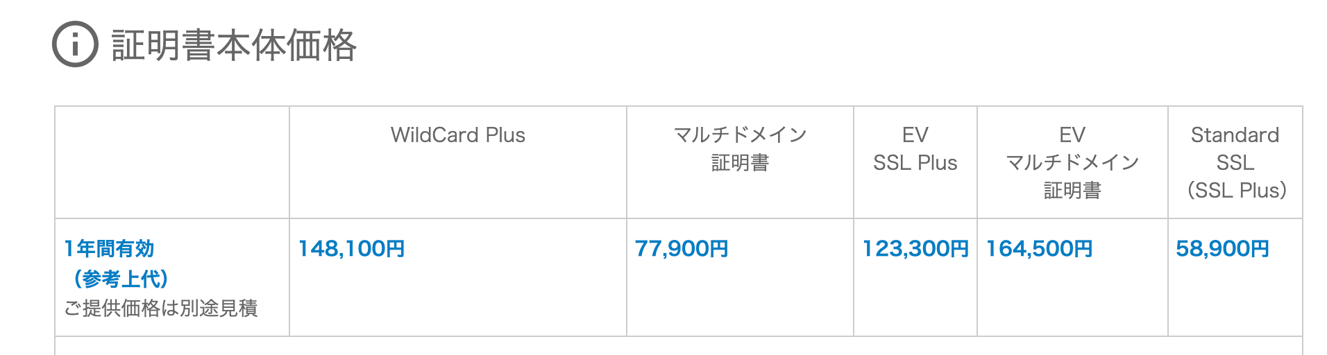ちなみにワイルドカード証明書にしたり、Digicertなどメジャーどころの証明書なんかにしたら価格が爆上がりします...