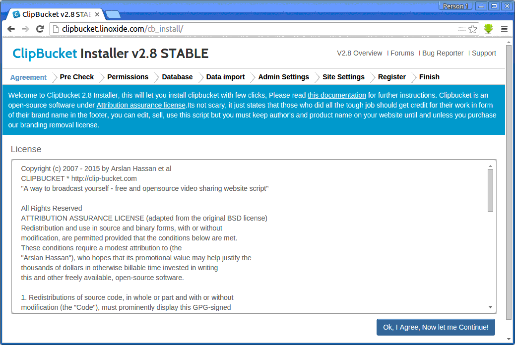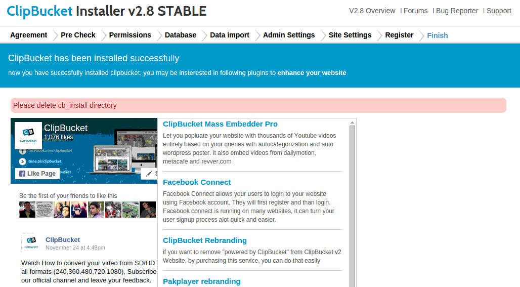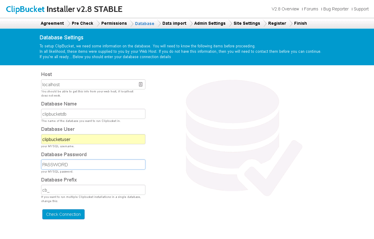 # cp -r /usr/local/src/clipbucket-2.8.v3354-stable/upload/* /var/www/html/clipbucket/