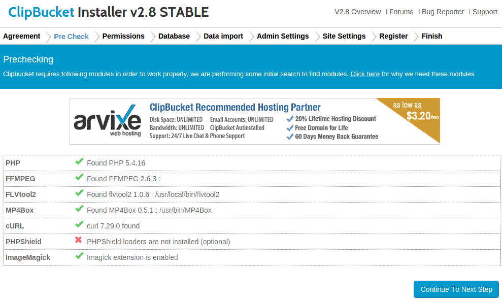 clipbucketのサーバ要件を満たしているか事前チェックになります。
