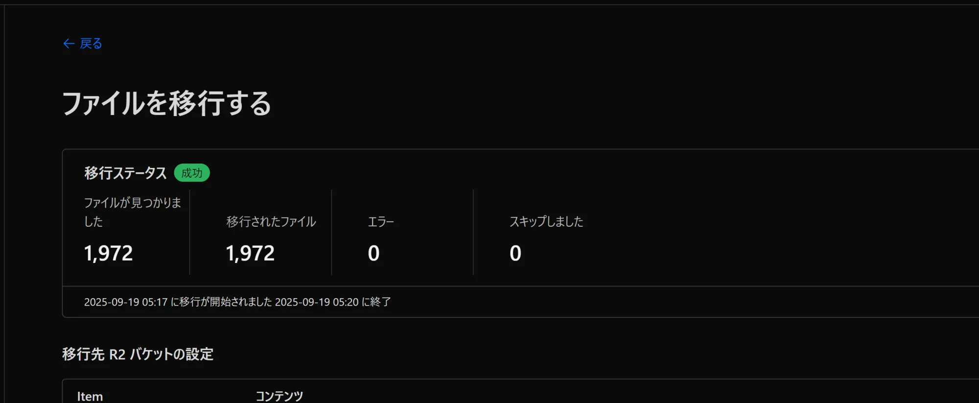 まずはS3バケットにあるデータ郡をR2ストレージに移します。