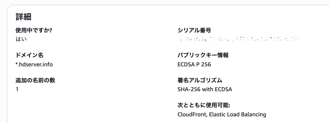 このブログはCloudfrontでデプロイしており、証明書の管理はACMを利用しています。