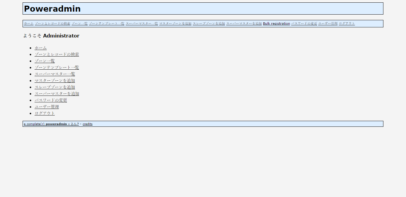 このままでも使うことはできますが、 管理しやすいようにPHPベースのGUIであるPoweradminを導入します。