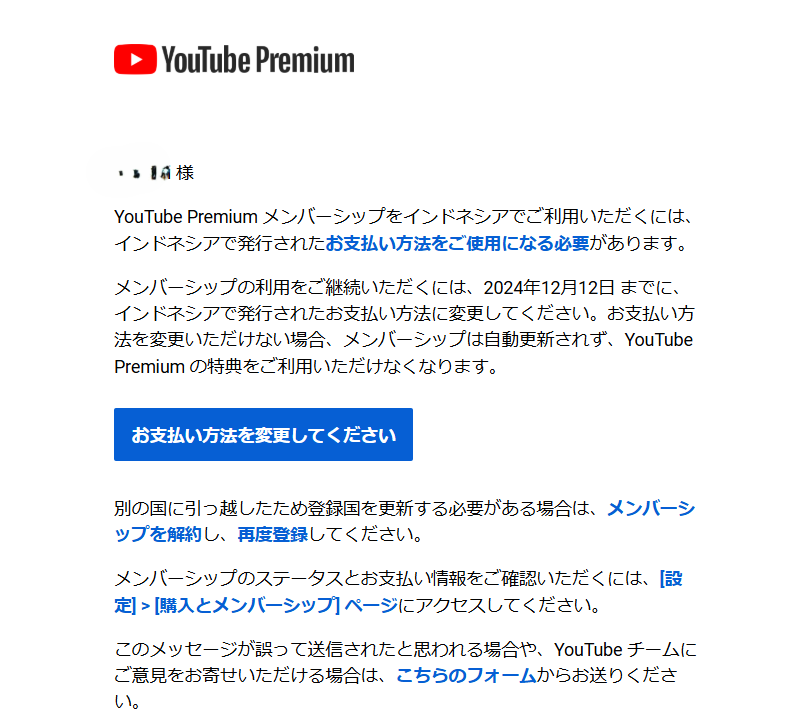 で、1年くらいこの手法を悪用愛用していたのですが、先日Youtube君から以下のメールが届きました。