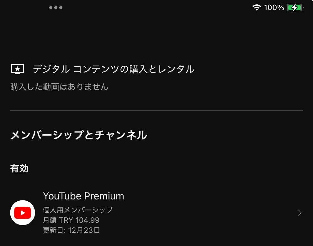 - 「マイアカウント」>「設定」>「購入とメンバーシップ」>「YouTube Premium を購入」に進み、iTunes 経由で購入プロセスを完了します。