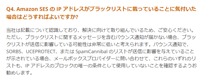AWS管理のIPがブラックリスト乗ったらSES使えんじゃないか…。