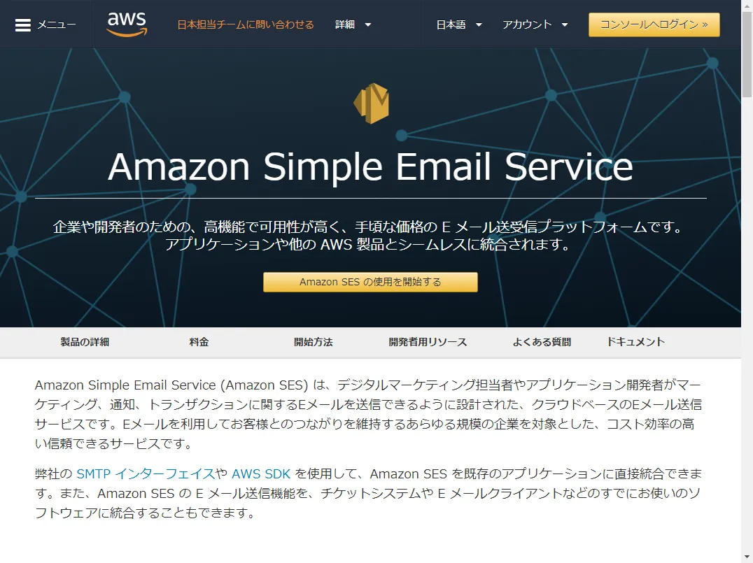 SESはAWSのサービス(EC2とか)から直接外部へ大量にメールの送受信を行うときとかに使用されます。