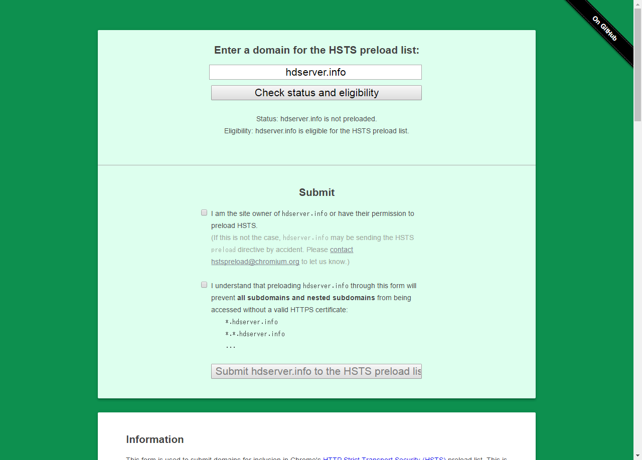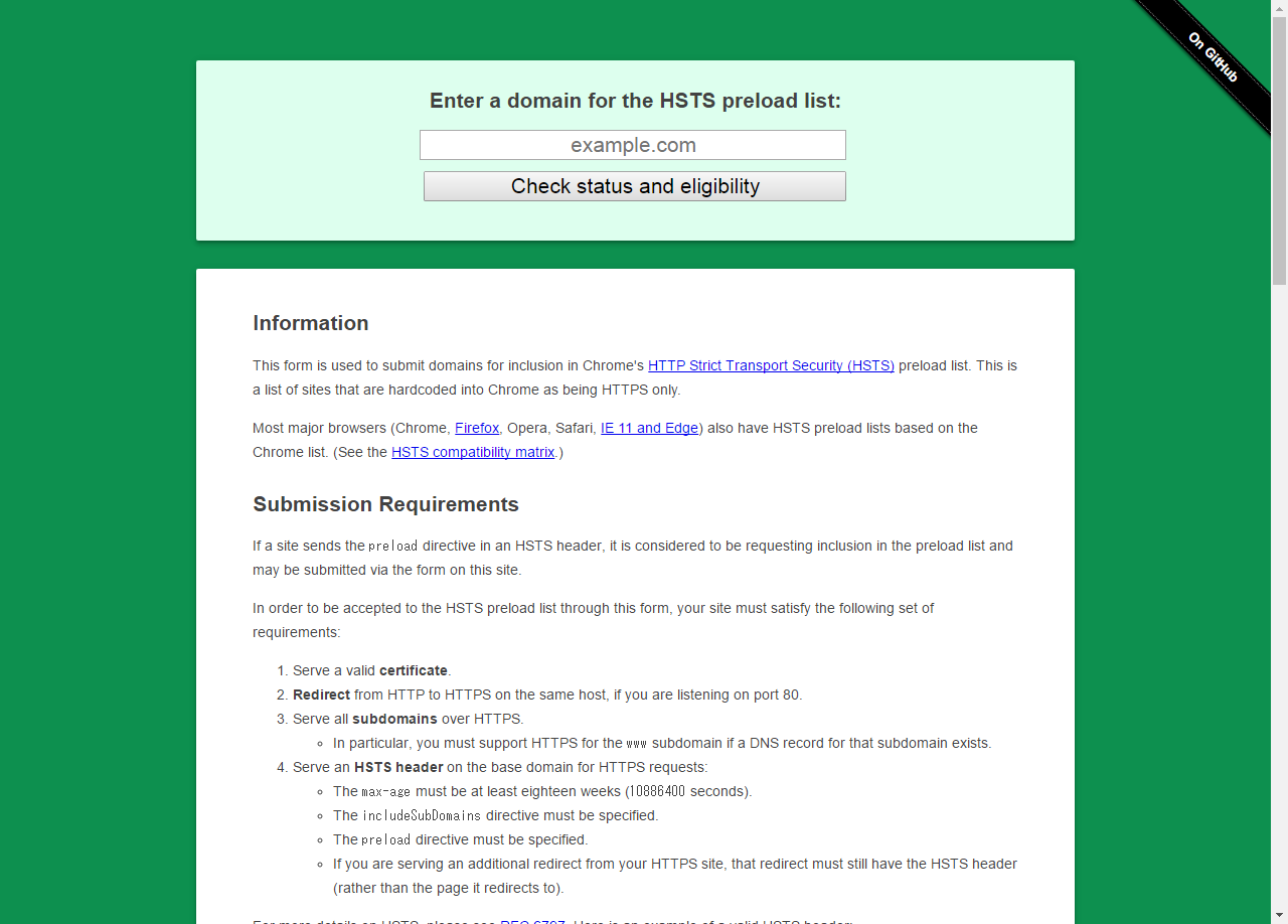 Google では、ドメインを HSTS Pre-loaded List に登録するサービスを行っています。