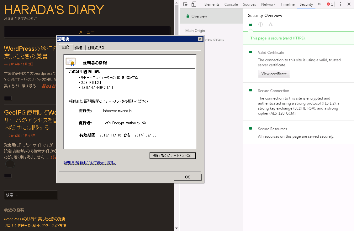 以降、個人情報の入力画面だけではなく、全てのページでSSL/TLS通信を行う「常時SSL/TLS化」の需要は高まっているので、この流れに乗ってWordpressもSSL化してみました。