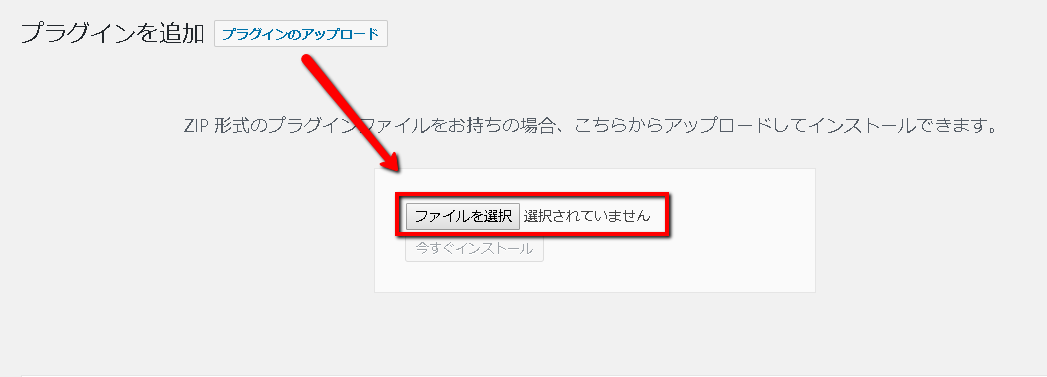 - [プラグイン] -> [新規追加] -> [プラグインのアップロード]