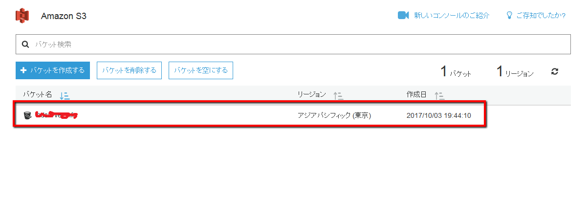 新しいバケットが作成されたことを確認します。
